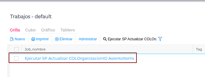 Ingresamos al maestro de Trabajos y buscamos el trabajo: