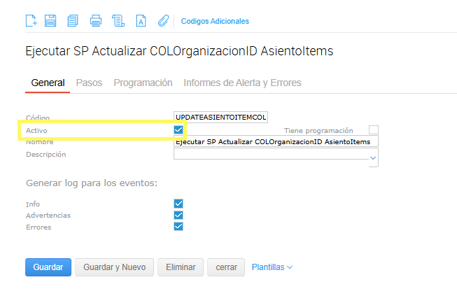 - Ejecutar SP Actualizar COLOrganizacionID AsientoItems