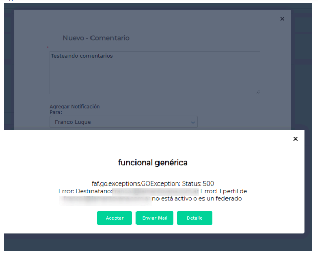 Al intentar realizar un comentario o guardar una transacción que es parte de una regla de autorización ,el sistema arroja un error