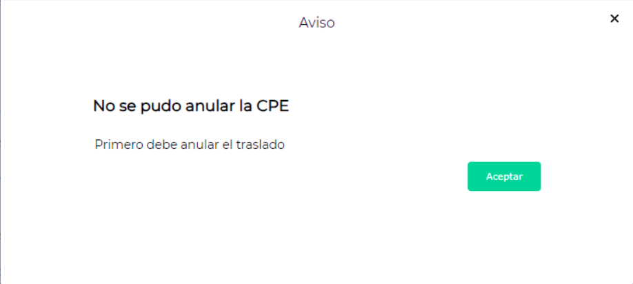 Al intentar anular una CPE el sistema arroja el siguiente aviso: