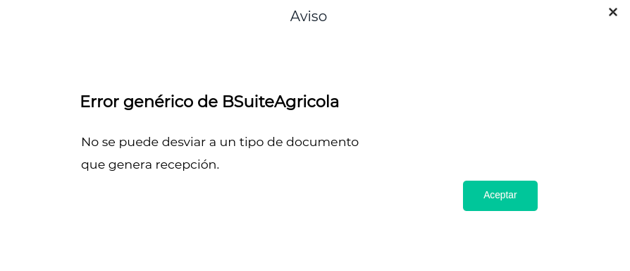 Al intentar realizar un desvío (regreso a origen) en un traslado de venta de granos, se obtiene el siguiente mensaje: