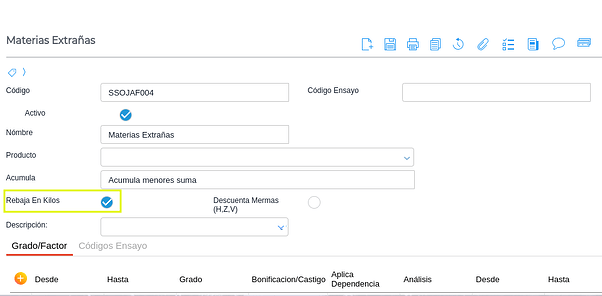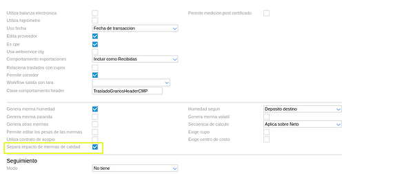 En determinados casos, en particular en operaciones de granos de Uruguay es frecuente que se descuenten en los traslados de granos, kgs en conceptos de mermas por la calidad de los granos. Estas mermas se calculan en función a los análisis ingresados y para las variables que tengan configurado el impacto en kgs.