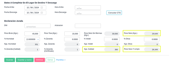 - Peso Seco y Limpio: son los kgs que resultan después de descontar los Kgs calidad, y son los que generan el pendiente de vinculación.