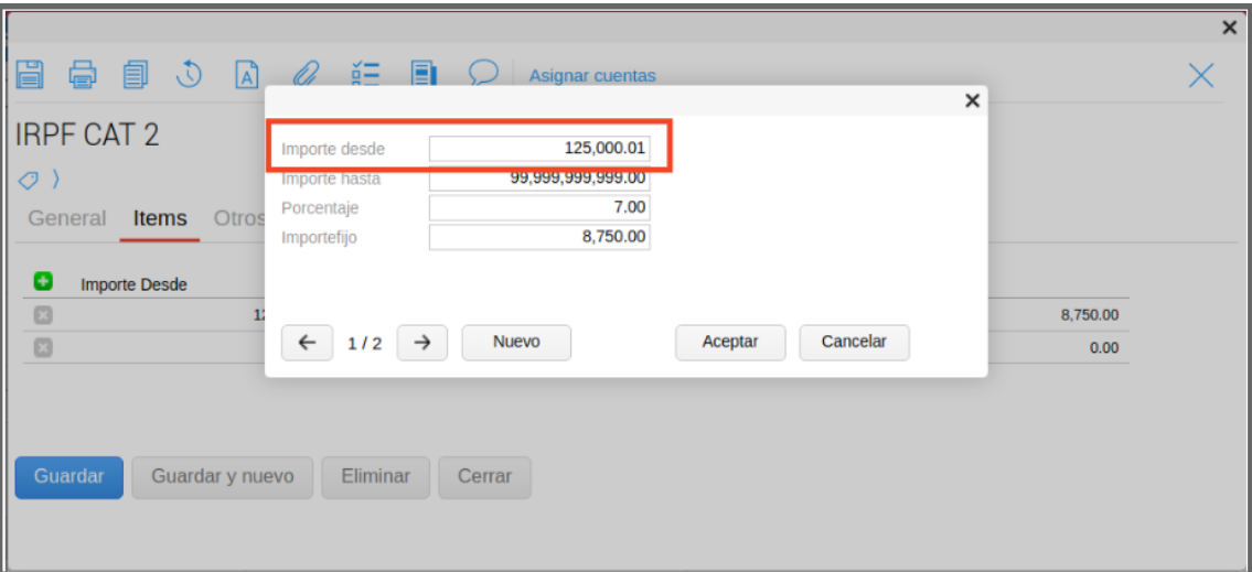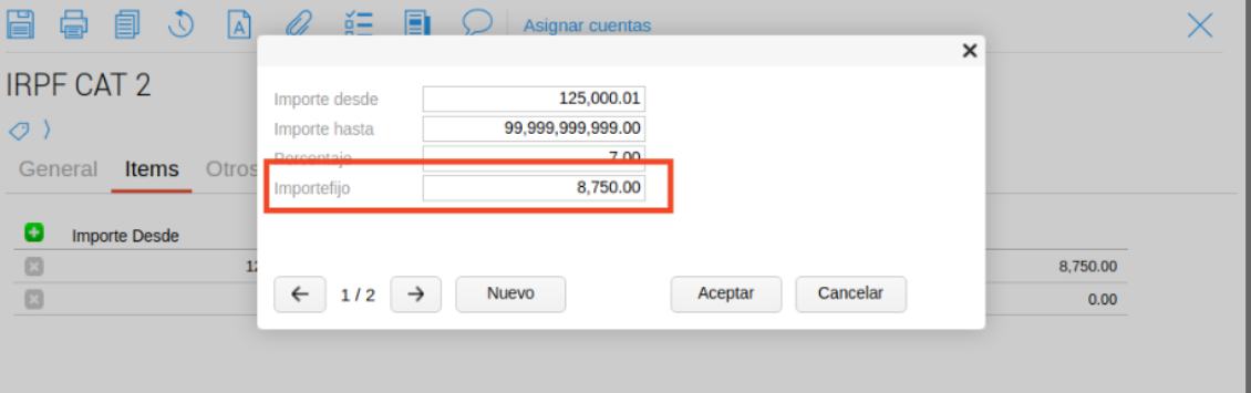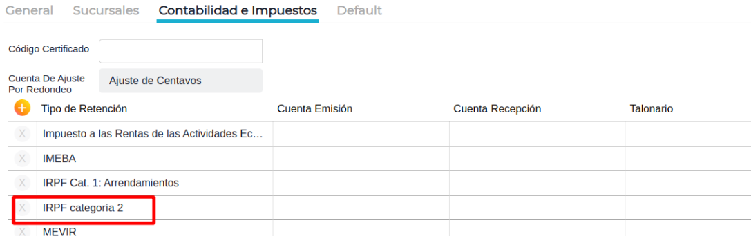 Se debe crear un retencion de IRPF cat 2 Para ello se accede desde el menú Gestión empresarial → Impuestos → Tipos de Retención