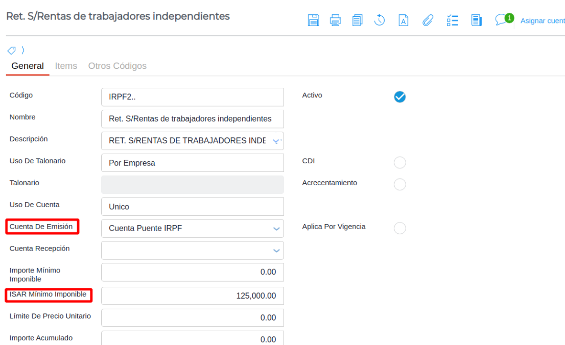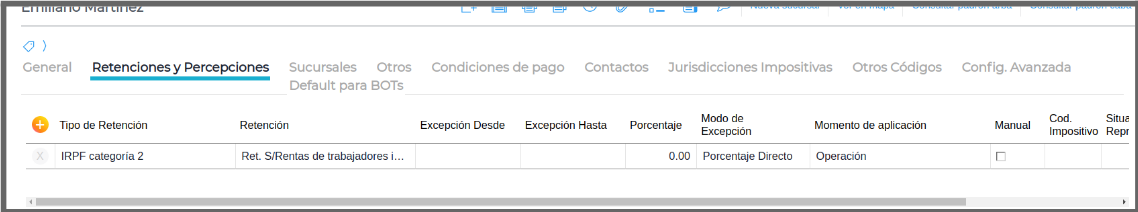 Ingresar dentro de la solapa de Contabilidad e impuestos, la retención previamente creada.