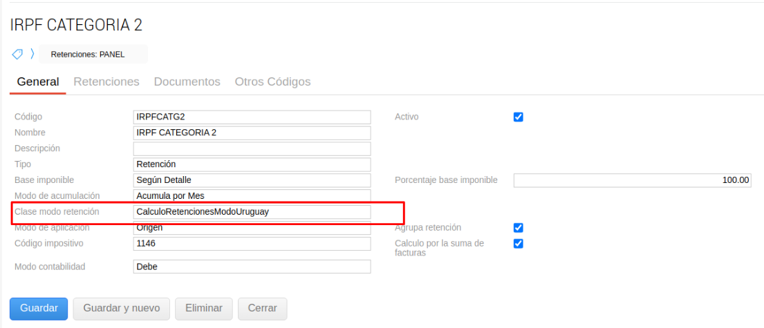 Clase modo retención: CalculoRetencionesModoUruguay.