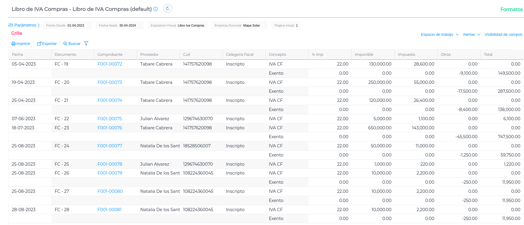 Deberás realizar la misma operación para las operaciones de venta que se verán reflejadas en el libro Iva Ventas