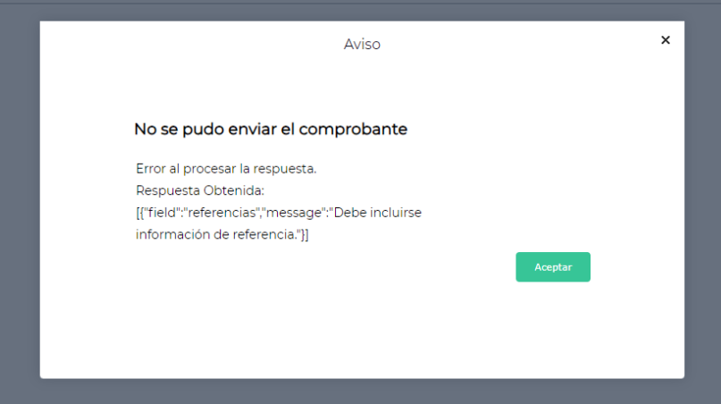 Al querer informar a biller una nota de crédito sale el siguiente mensaje de error: