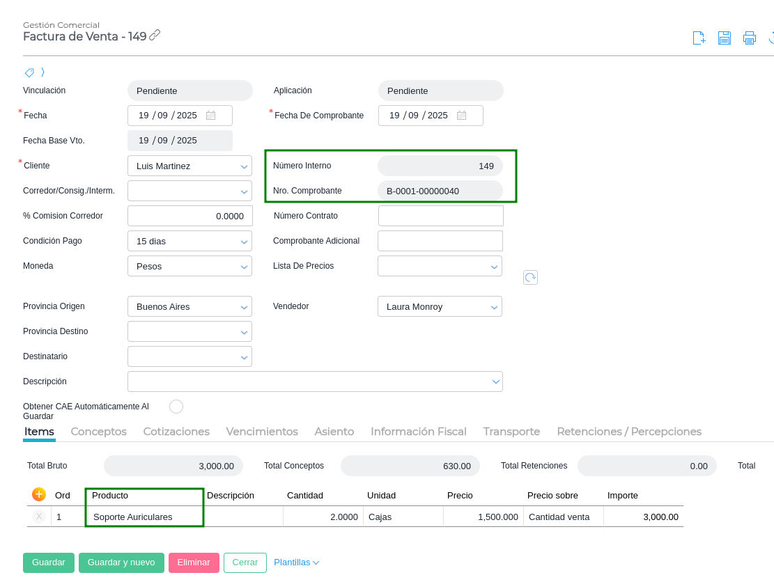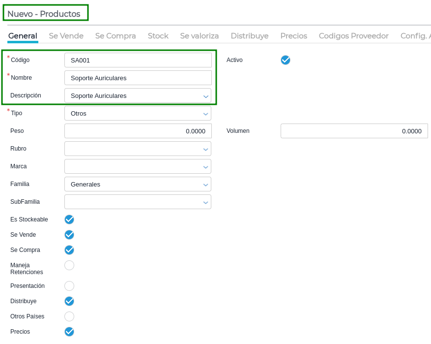 Si existen transacciones previas, se mostrará el siguiente mensaje: “No se permite modificar la unidad de Venta “otros” para el producto Soporte de auriculares porque existen operaciones generadas con anterioridad”.