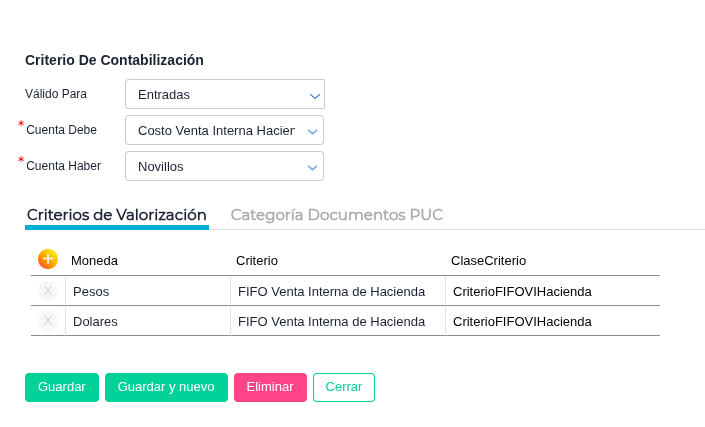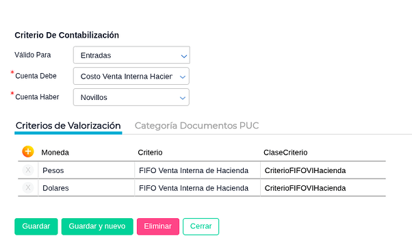 Este criterio se utiliza para valuar exclusivamente traslados y cambios de categoría de hacienda por venta interna, siendo diferente al actual criterio de valorización por traslados y cambios de categoría estándar.