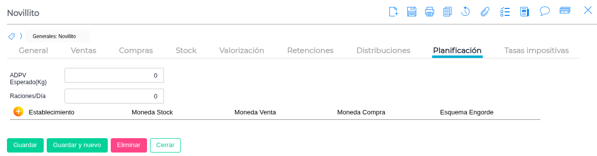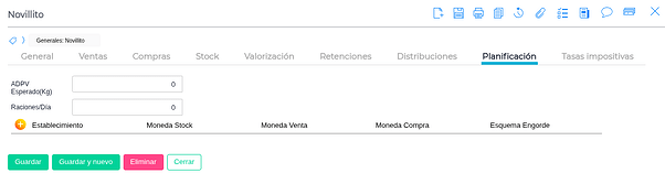 En esta solapa se define la moneda de venta para valorizar los traslados y cambios de categoría por ventas internas y para generar presupuestos en planificaciones ganaderas.