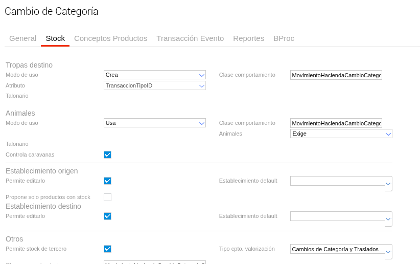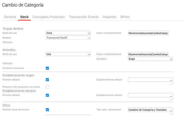 Para valorizar categorías de hacienda por ventas internas es necesario dar de alta nuevos tipos de documentos de traslados y cambios de categoría. Al mismo tiempo se le definen el concepto de valorización por ventas internas