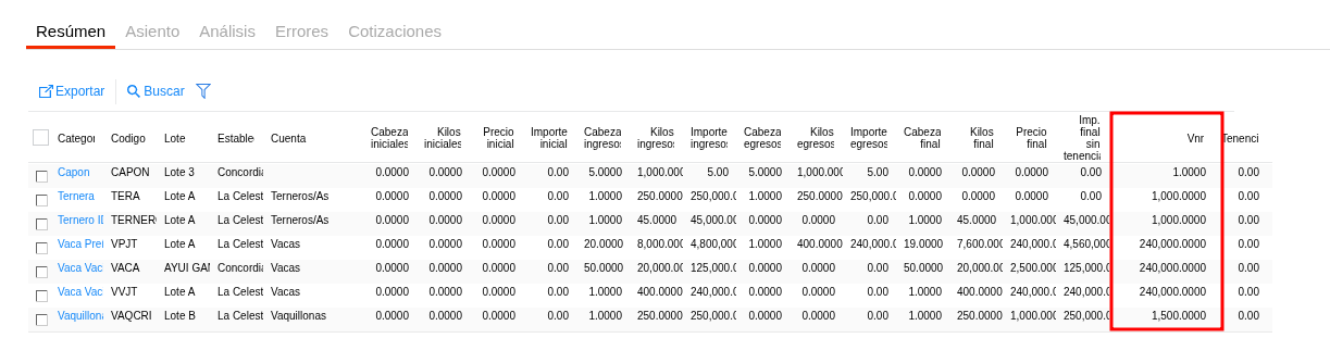 La columna VNR indica la cotización de la “moneda general” de la categoría de hacienda a la “fecha hasta” de la valorización de hacienda (o la cotización anterior más cercana):
