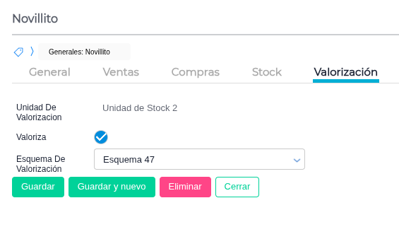 Se debe indicar un esquema de valorización, y dentro del esquema se debe indicar un concepto de valorización para cada uno de los posibles movimientos de dicha categoría incluyendo el de tenencia para todas las categorías (+info).