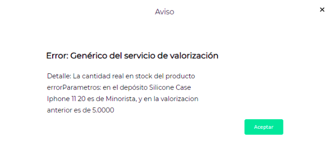 Al hacer click en “Valorizar” el sistema emite el siguiente mensaje:
