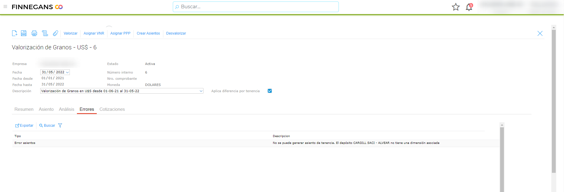 Volvemos a la valorización, desvalorizamos, volvemos a valorizar y generamos los asientos nuevamente.