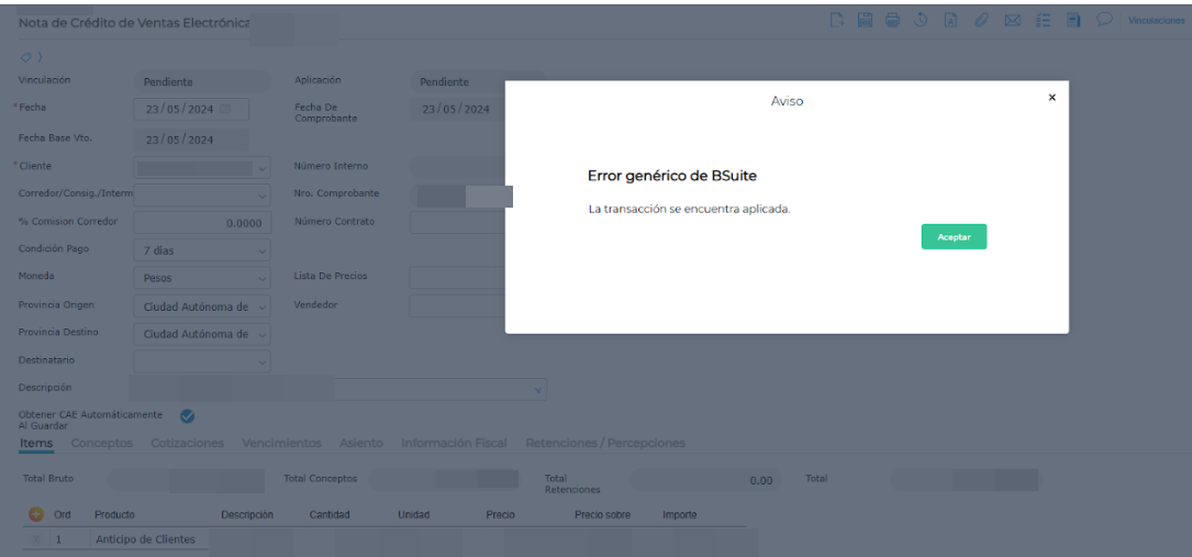 Consulta: ¿Se requiere eliminar una transaccion, pero cuando se aprenta el boton de eliminar, recibo el mensaje de “La transacción se encuentra aplicada”?