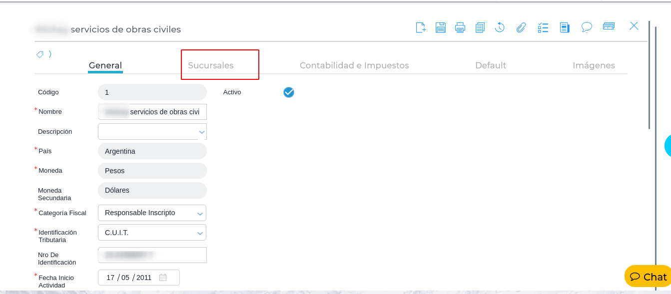 - Dentro de la empresa, ve a la solapa “Sucursal”.