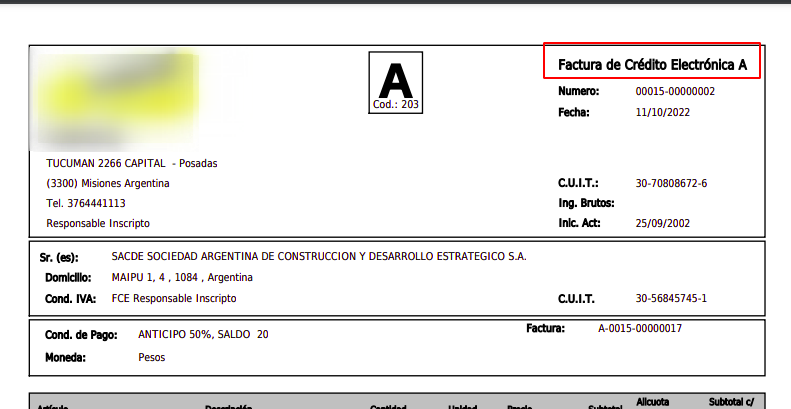 Consulta: Al cargar una nota de crédito y previsualizarla no aparece con el nombre de Nota de crédito sino de Factura de Crédito Electrónica A, como se ve en la imagen: