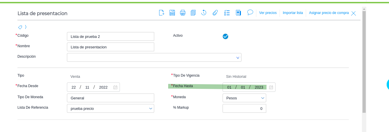 - Revisar la fecha de vigencia de la lista de precios.
