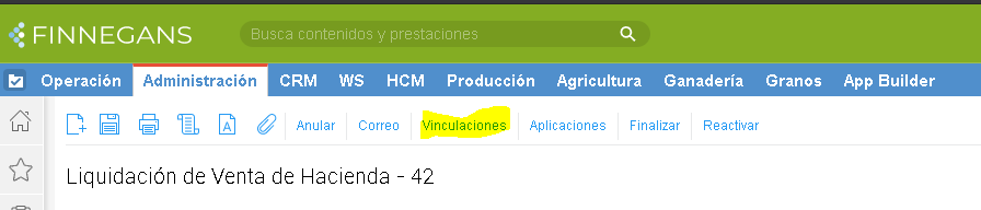 1-Hacer click en el botón “Vinculación”. Va a aparecer un campo que va a indicar el workflow que seleccionamos en el asistente o ya tiene la transacción configurada.